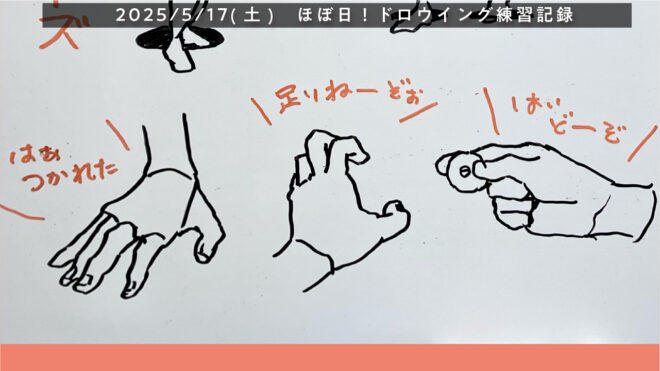 手の骨格を想像しながら一発描き、難しい!